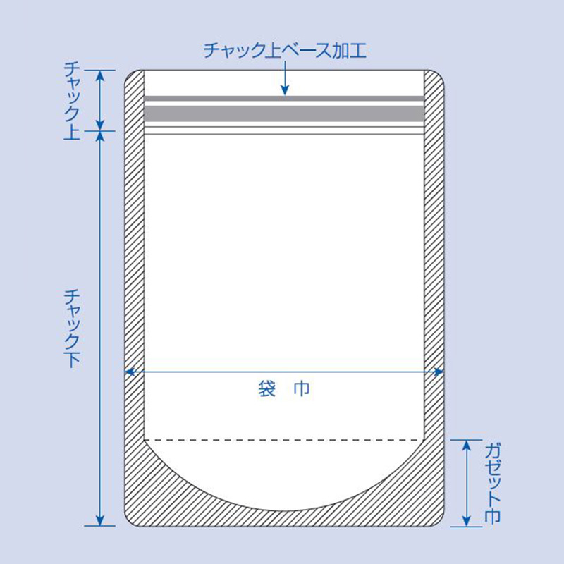 | 仕様 | チャック付、両サイド6mmシール、コーナーカット、ノッチ付 |