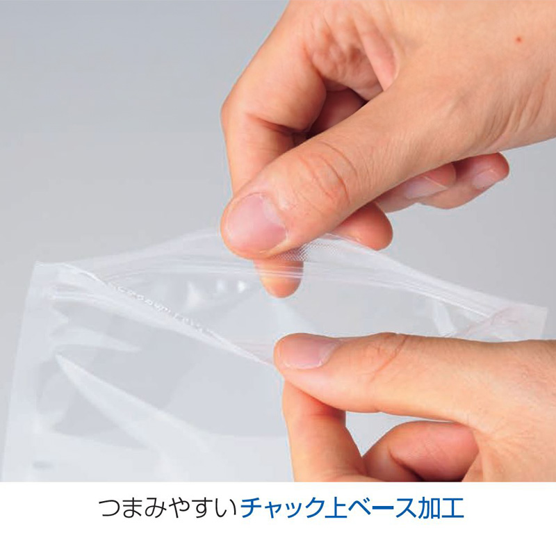 非塩素系バリアフィルムを使用しており、脱酸素剤がご使用できます。冷蔵食品、冷凍食品、農産加工品、海産加工品、穀類、日用雑貨品、文房具など幅広くご利用いただけます。