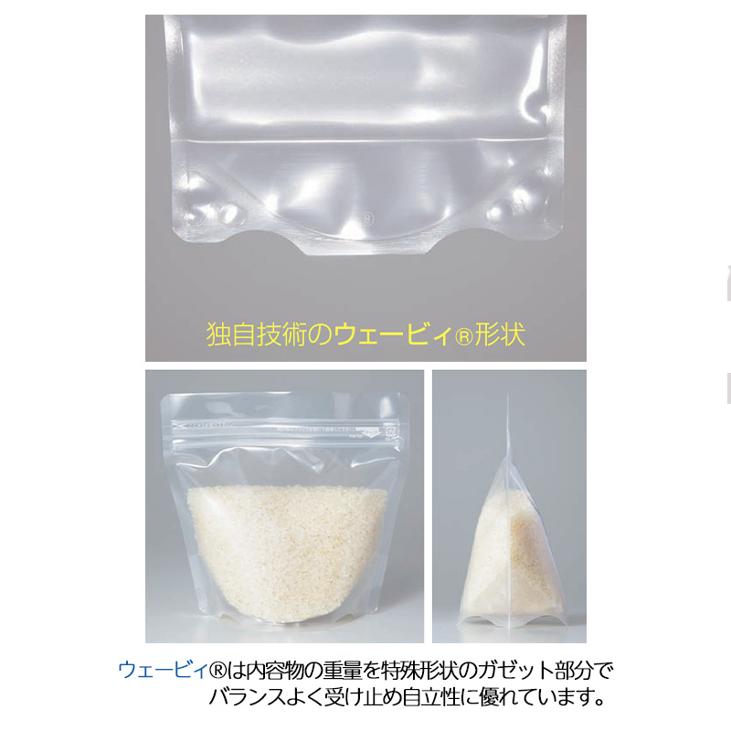 開口部が広く、「充填しやすく、取り出しやすい」巾広タイプのチャック付ラミネート袋スタンドパックです。冷蔵、冷凍製品、農水産加工品などにご利用いただけます。