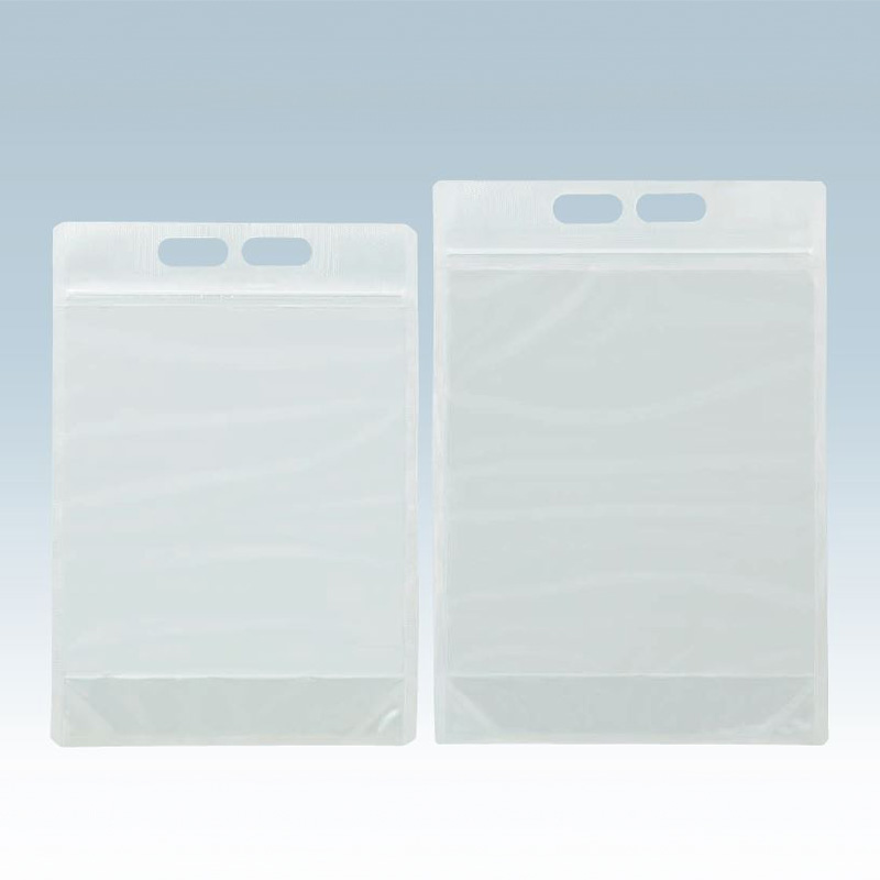 手さげタイプチャック付ラミネートスタンドパックです。手さげタイプは持ち運びに最適です。日用雑貨品、冷蔵、冷凍食品、農水産加工品をはじめ、化粧品、シャンプー・リンスのセット販売、スポーツ用品の包装、日用雑貨品など幅広い用途にご利用いただけます。NY/PEフィルムは丈夫で再利用ができ、とてもエコな製品です。