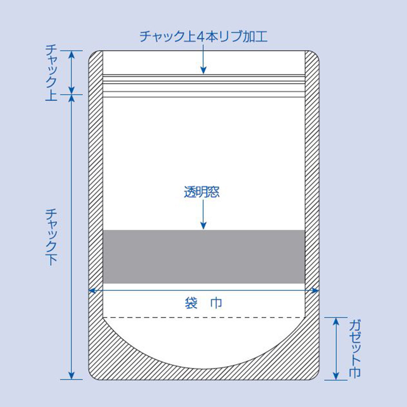 | 仕様 | 紙素材、チャック付、両サイド6mmシール、コーナーカット、ノッチ無し |