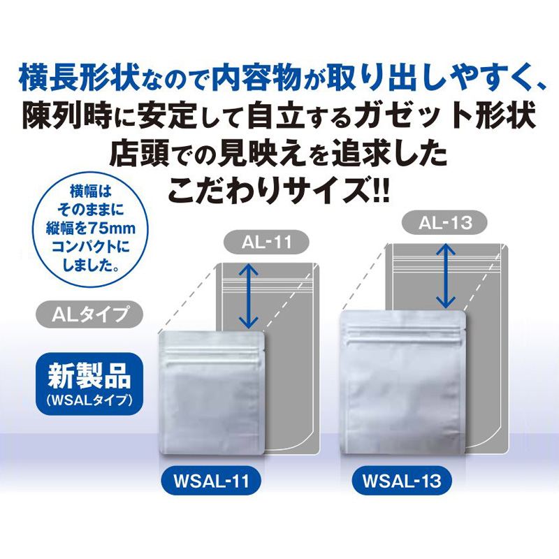 スタンドパック ワイドALタイプ(WSAL)|脱酸素剤使用可・防湿性・遮光性/チャック付/アルミ箔/スタンド袋/セイニチ
