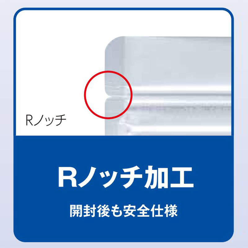| 仕様 | チャック付、両サイド6mmシール、コーナーカットノッチ付 |