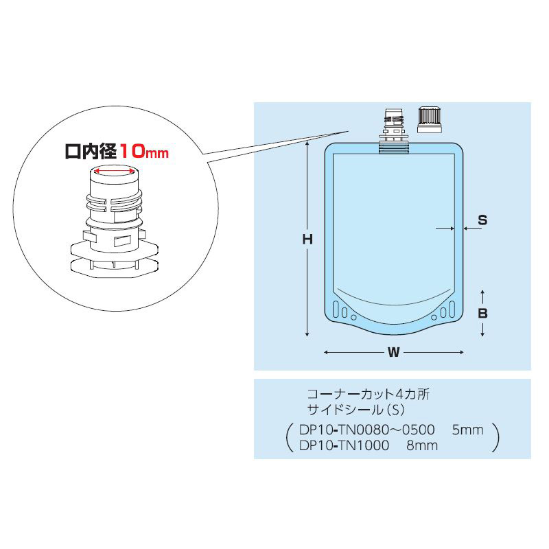 | 仕様 | サイド5mmシール(TN0080~0500)、サイド8mmシール(TN1000)、コーナーカット |