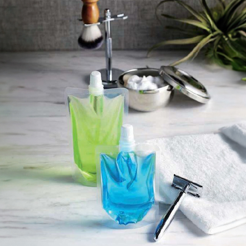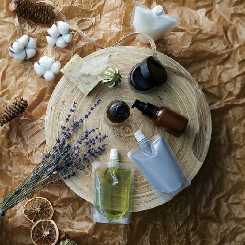 2ピースキャップ付・透明スタンド袋。ハイガスバリア性に優れたフィルムを使用しています。