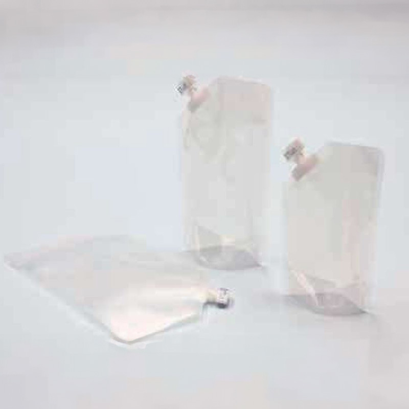 1ピースキャップ付・透明スタンド袋。ガスバリア性に優れたフィルムを使用しています。