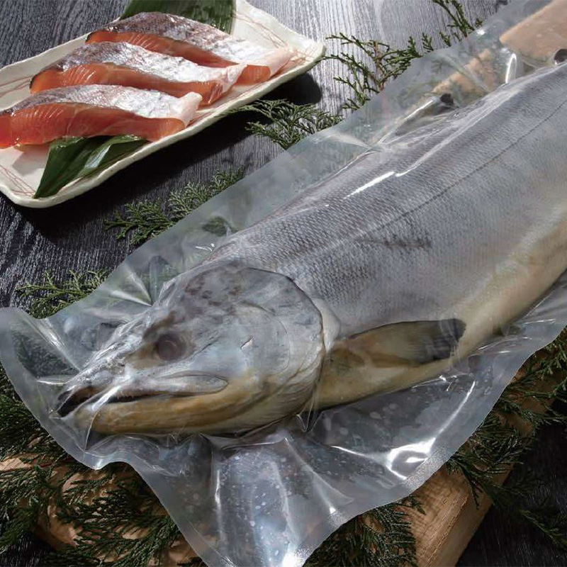 「新巻鮭用」にフィルムを厚くした大型三方シール袋魚丸物1匹に対応した細長い三方シール袋です。