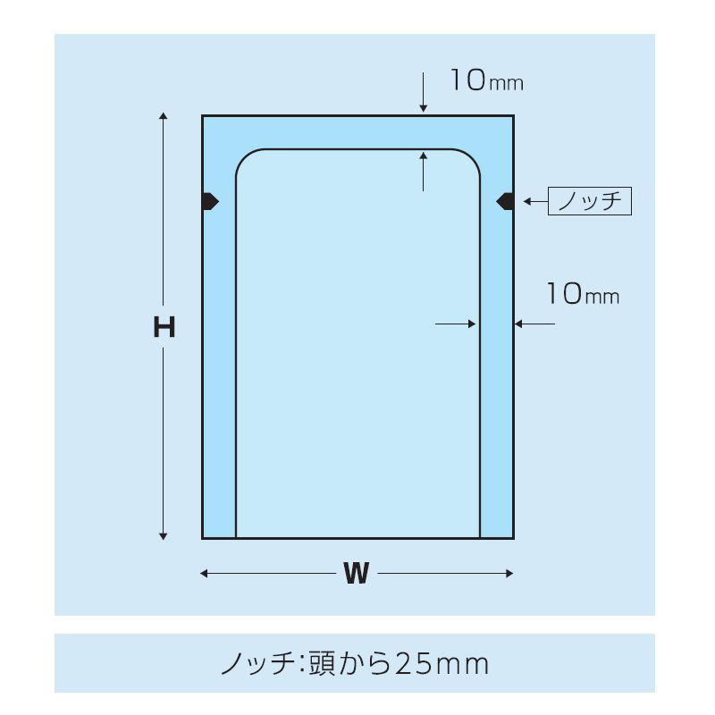 | 仕様 | 両サイド10mm・頭10mmシール、ノッチ付 |