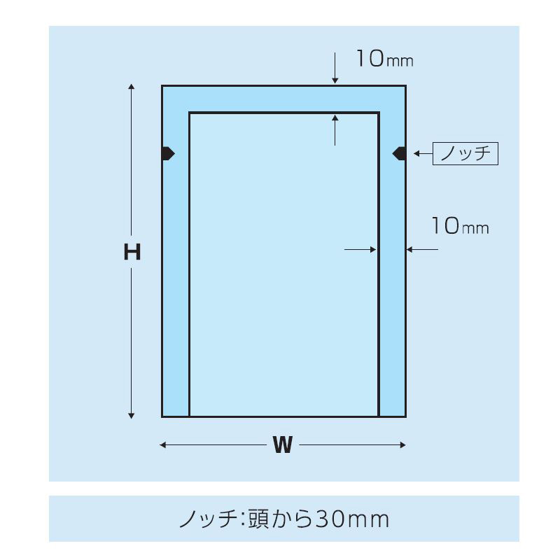 | 仕様 | 両サイド10mm・頭10mmシール、ノッチ付 |