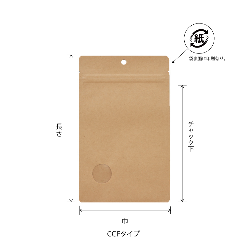 CCFタイプ|脱酸素剤使用可・防湿性・遮光性/クラフト紙/チャック付・フック穴付/三方袋/ベリーパック