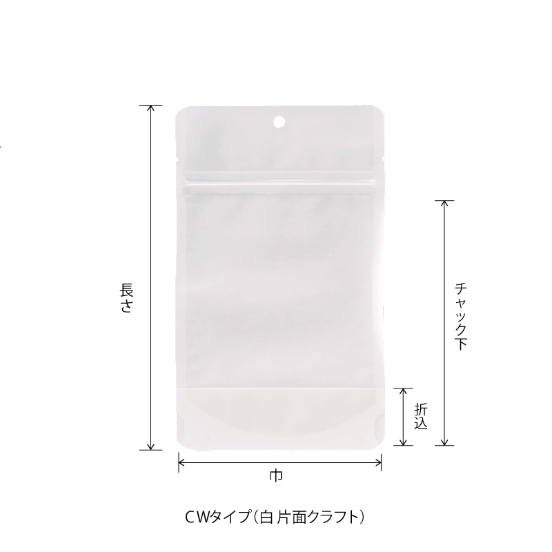 CW・CHタイプ|脱酸素剤使用可・防湿性/クラフト紙/白・茶・クラフト紙/片面透明/チャック付・フック穴付/スタンド袋/ベリーパック