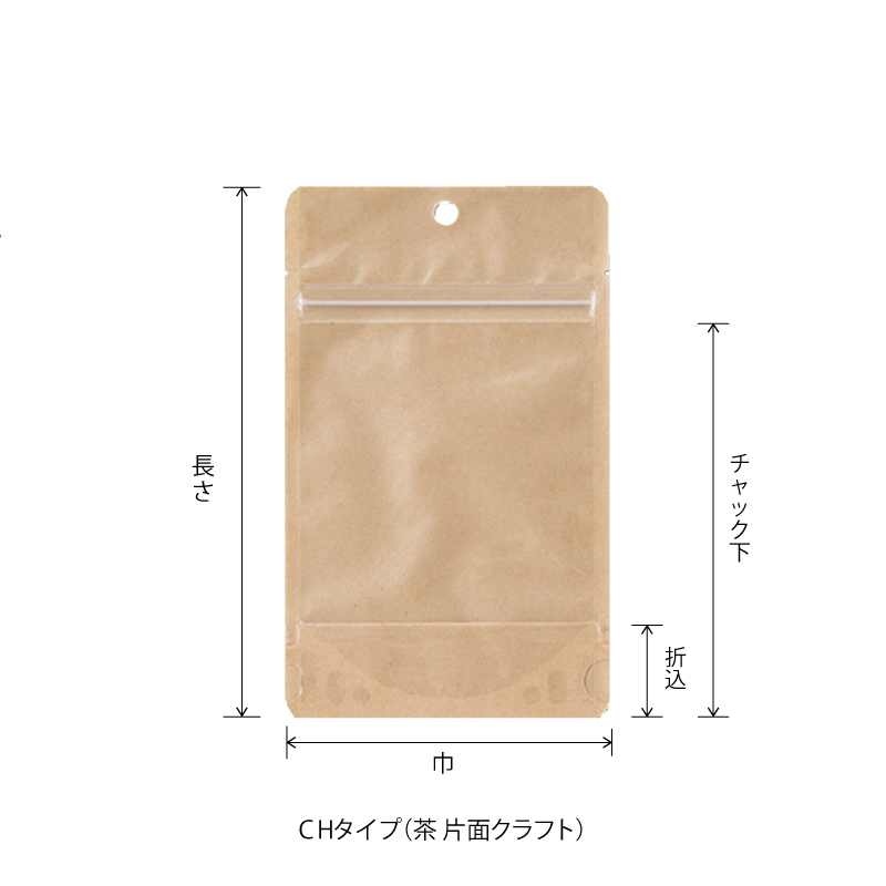 | 仕様 | チャック付、両サイド10mmシール、コーナーカット、ノッチ付 |