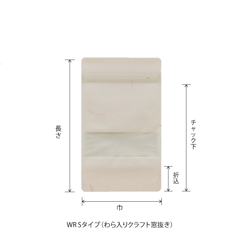 自然な風合いの未晒しクラフト素材や質感のあるわら入りクラフト素材を使用し、表面の一部に窓抜き加工を施した、商品が見えるチャック付スタンドパック袋です。