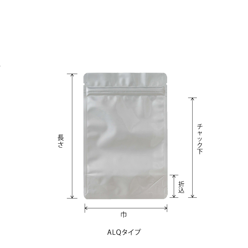 ALQタイプ|脱酸素剤使用可・防湿性・遮光性/アルミ箔/銀/チャック付/スタンド袋/ベリーパック