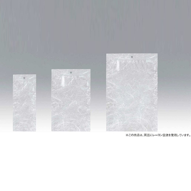 レーヨン雲流を使用した、陳列に便利なフック穴付袋。環境にやさしい非塩素系バリアー樹脂のOPP使用。