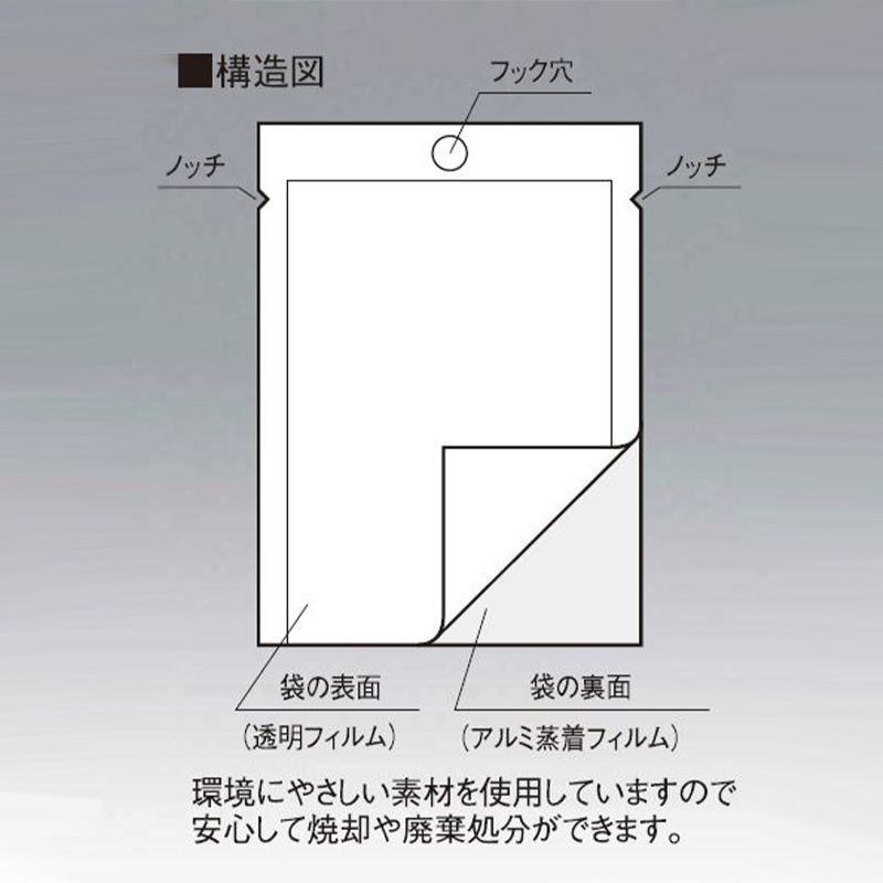 | 仕様 | アルミ蒸着、片面透明、フック穴(HOのみ)、10mmシール、ノッチ付 |