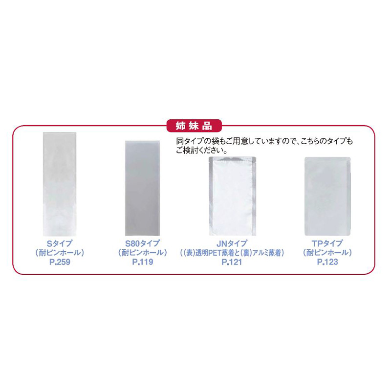 | 機能 | バリア性(脱酸素剤使用可)・ボイル90℃30分・冷凍-40℃・耐衝撃性・耐摩耗性・真空包装 |