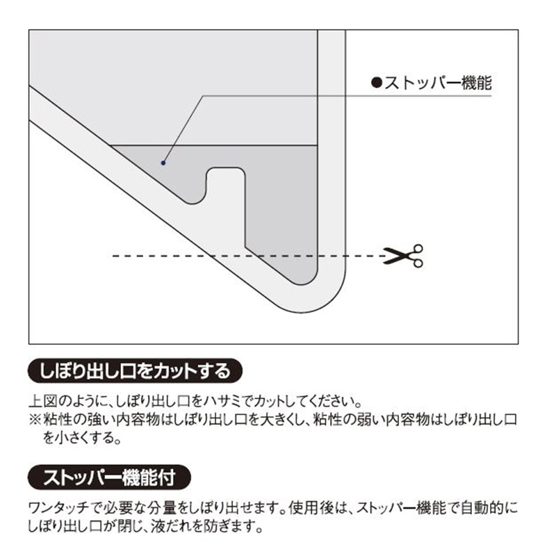 ■液だれを防ぐストッパー機能付です。※食品以外のペースト状内容物にも、ご利用できます。
