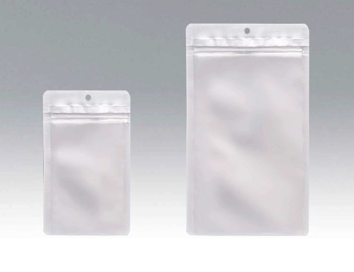 表面は透明、裏面は蒸着のディスプレイ効果に優れたチャック付包装です。防湿性に優れ、バリアー性があります。