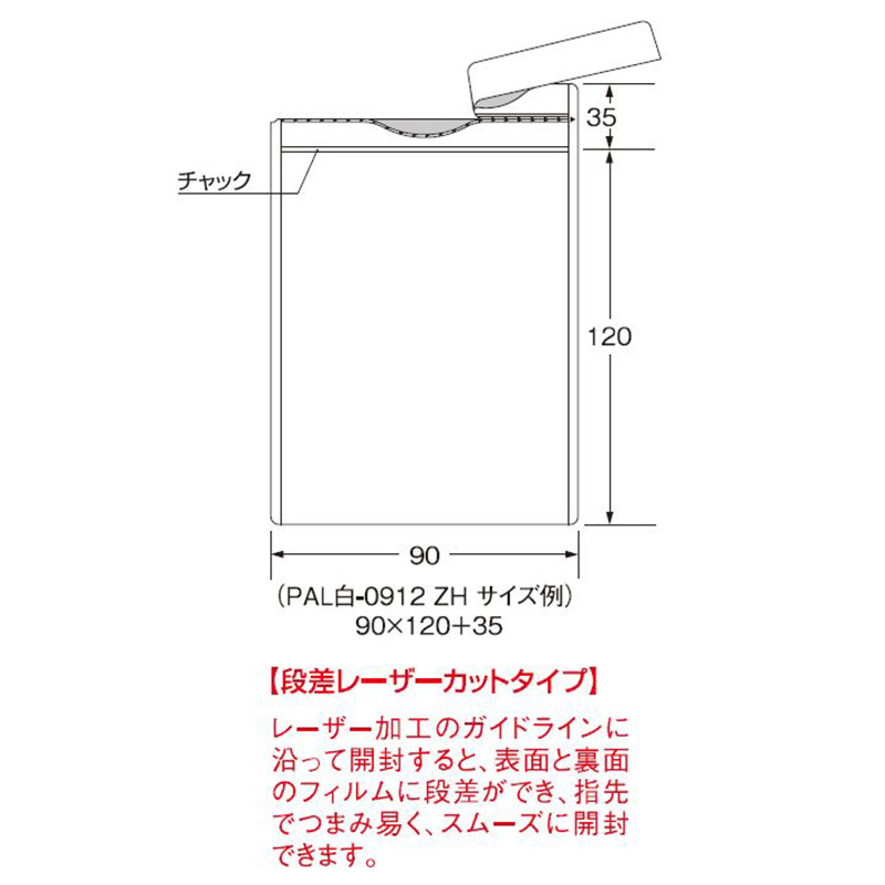 | 仕様 | アルミ箔、7mmシール、チャック付、段差レーザーカット付、ノッチ付 |