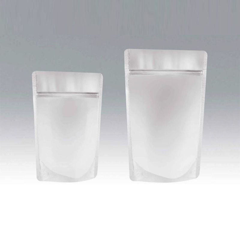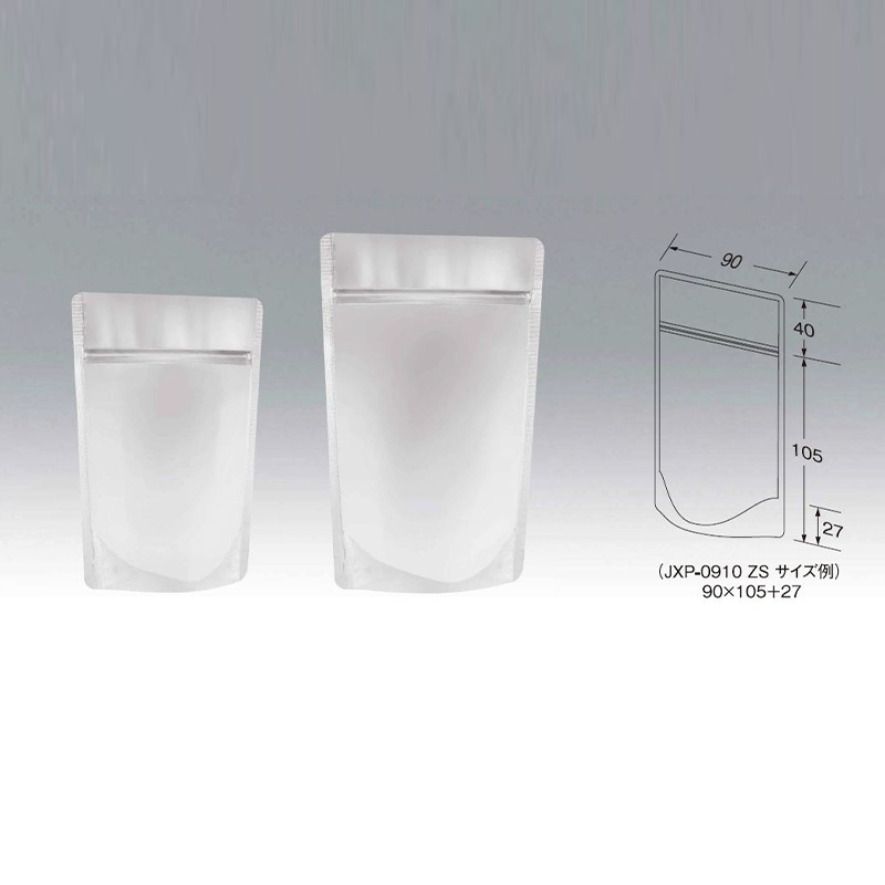 表面は透明、裏面は蒸着のディスプレイ効果に優れたチャック付スタンディング包装です。防湿性に優れ、バリアー性があります。