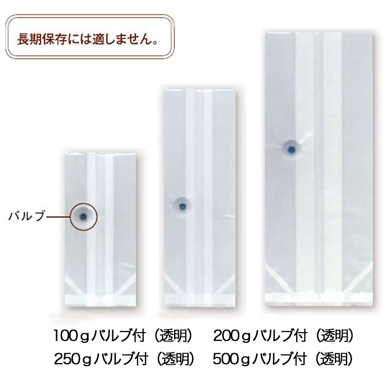 | 仕様 | バルブ付・バルブ無(透明ガゼット袋) |