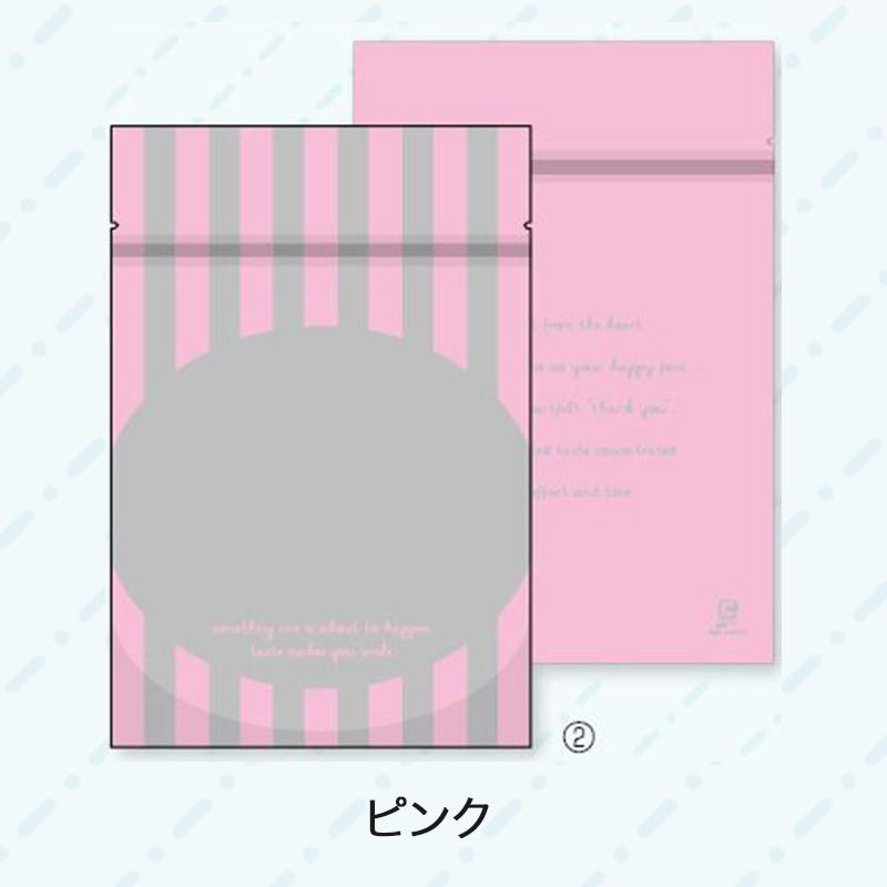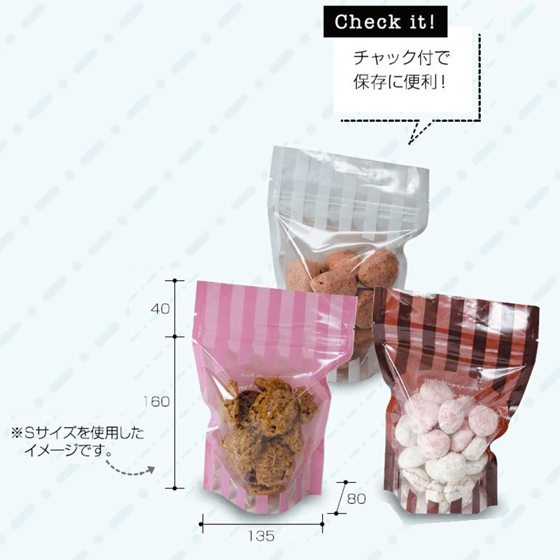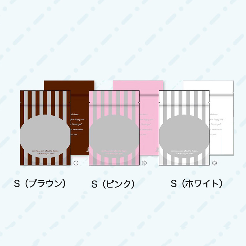 美味しいものはみんなで分け合いたい。保管に便利なチャック付き袋。3サイズ3カラーからお選びいただけます。