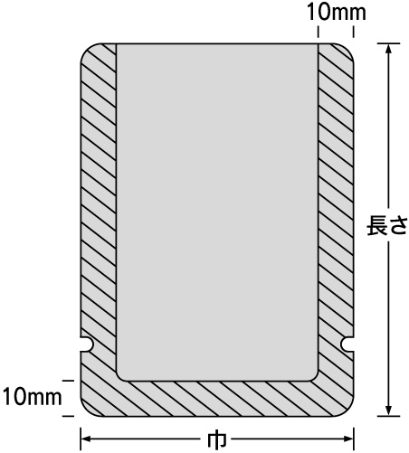 | 仕様 | 両サイド10mm・底10mmシール、角Rカット、ノッチ付 |
